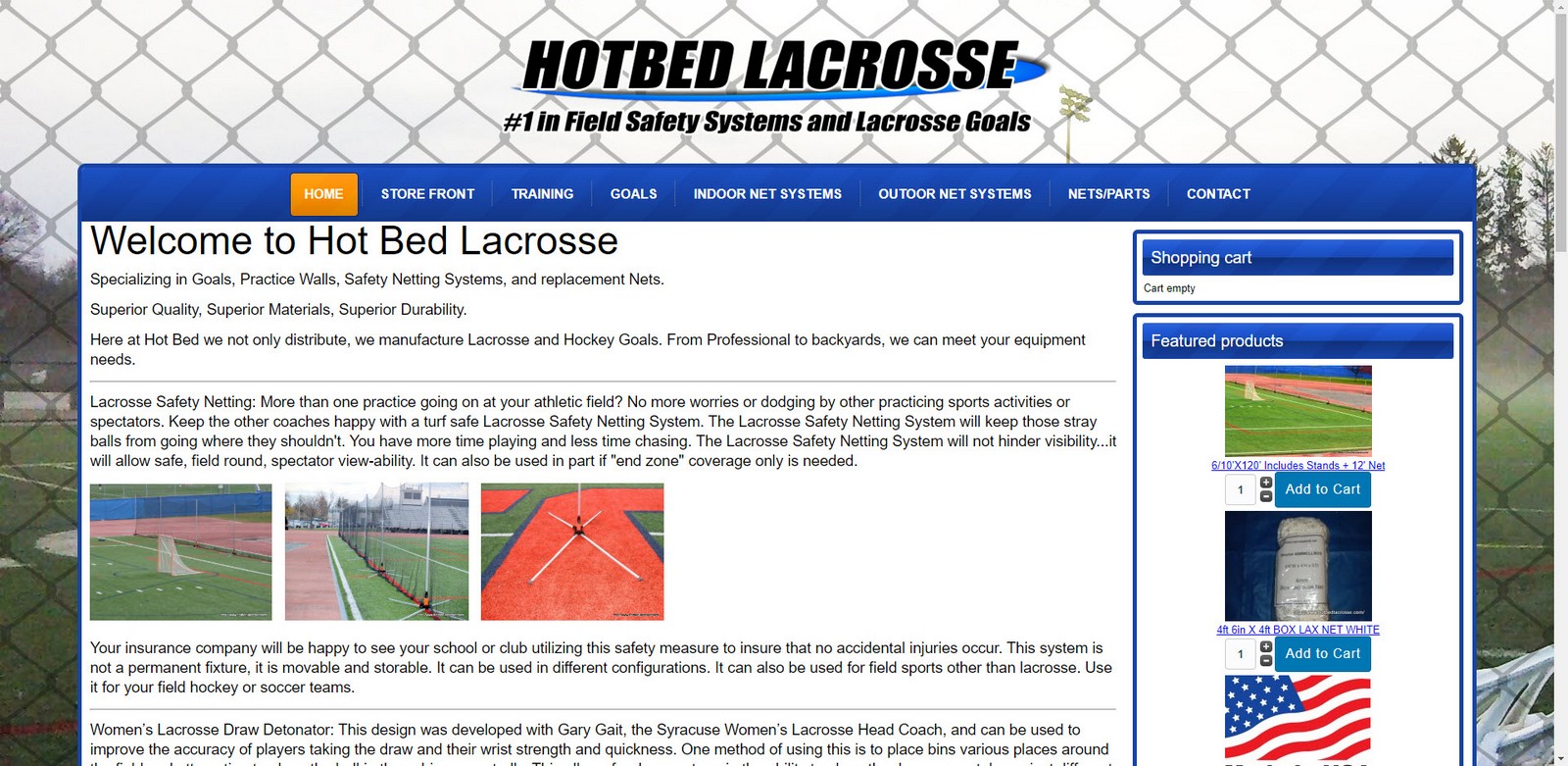 Hot Bed Lacrosse - Ecommerce web site utilizing Ecwid and Authorize.net for payment processing.