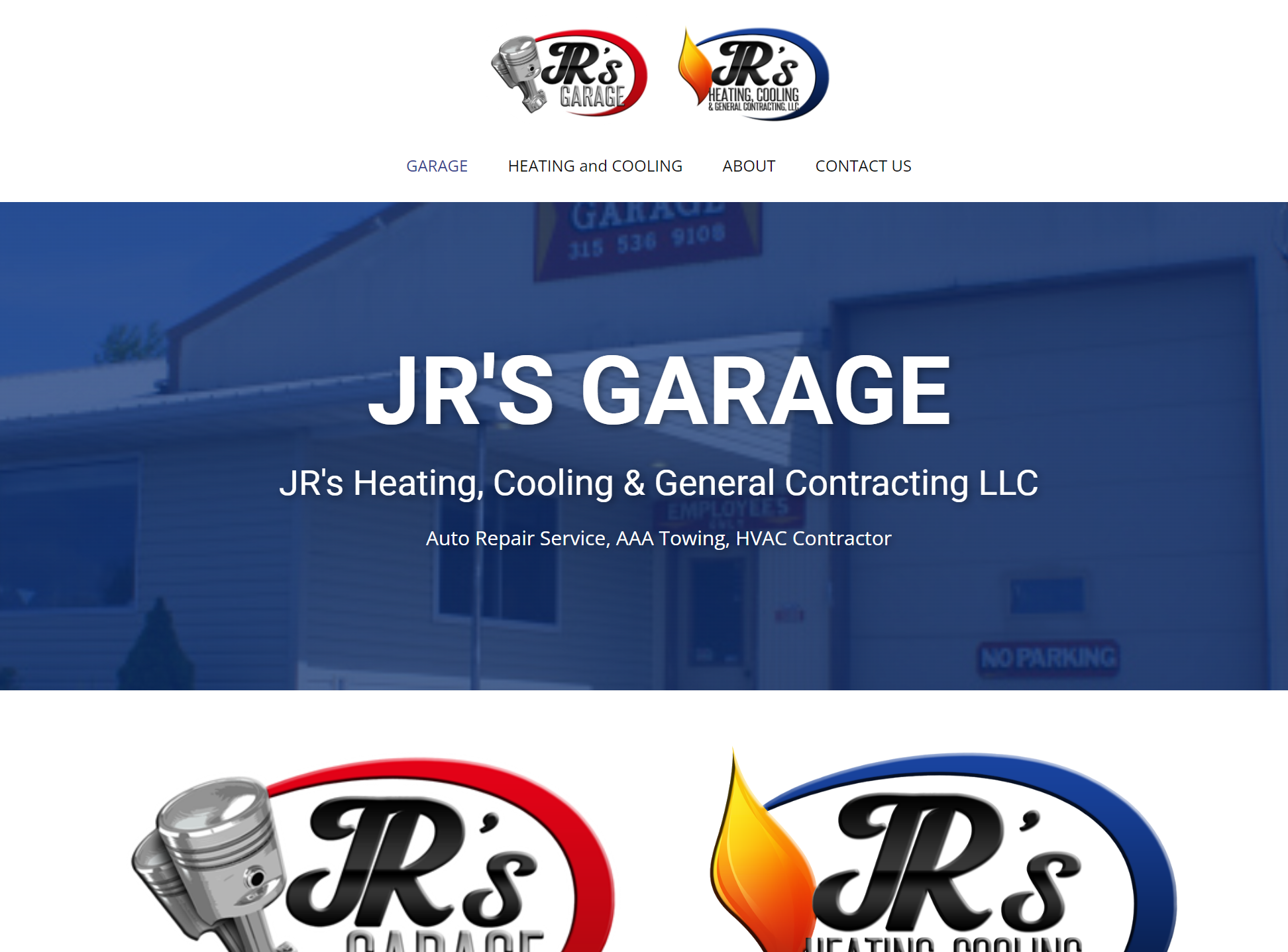 Web Site creator for Jr's Garage, Cooling and Heating.